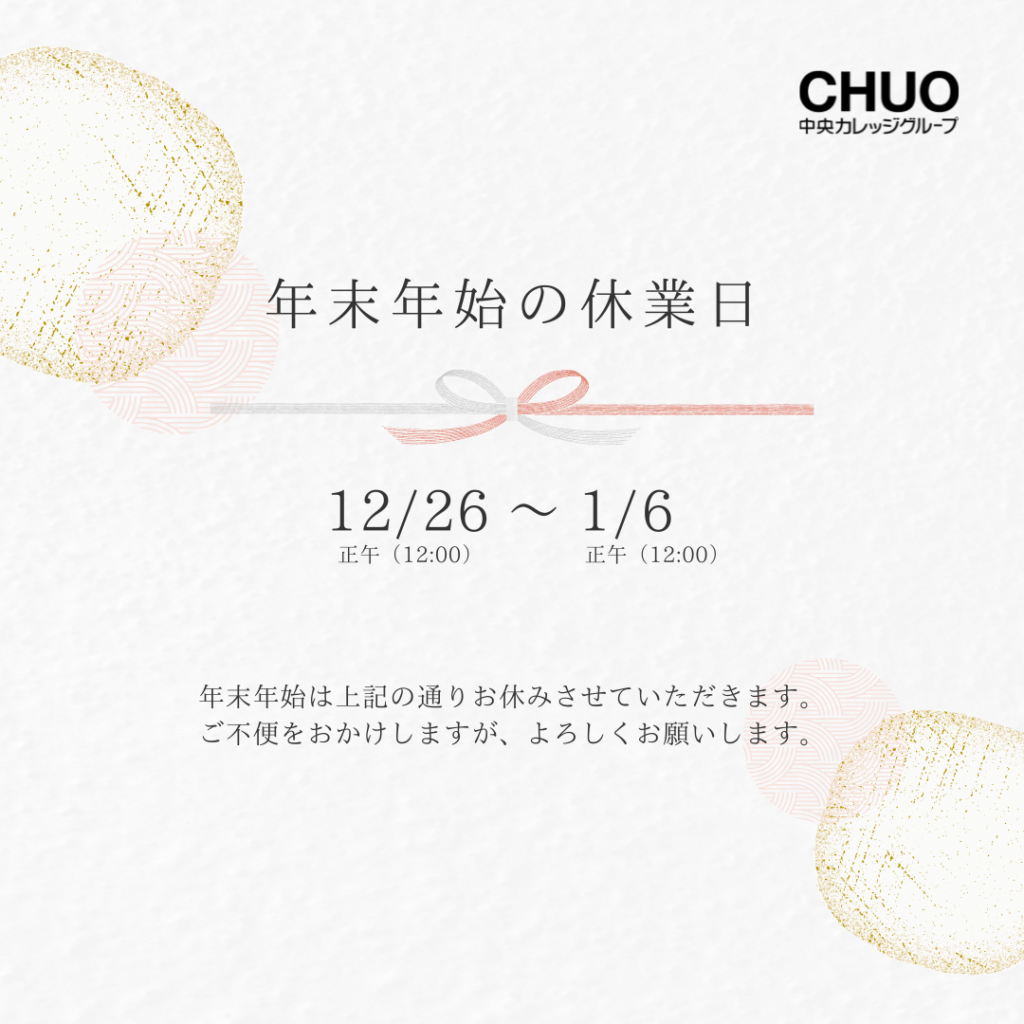 誠に恐れ入りますが、2024年12月26日(木)正午(12:00)から2025年1月6日(月)正午(12:00)まで、年末・年始休暇により窓口業務を停止させていただきます。