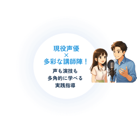 まったくの未経験から始める方も多く在籍予定です。基礎から丁寧に指導しますので、声優を目指す第一歩に最適です。