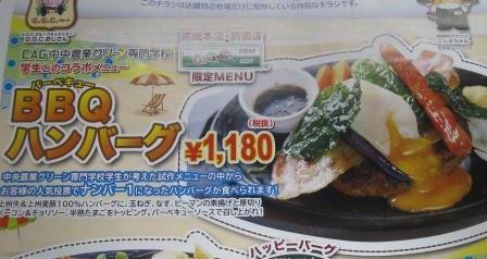 こんにちは。 毎日暑いですね(^-^;) 教務の茂木です。 農業グリーンは、学生も夏休みに入り校舎内がとても静かです。 学生には、長期の休みにしかできない経験をたくさんしてもらいたいと思います。 以前の教師日記でもお知らせしましたが、8月1日からGGCハンバーグさんとのコラボハン…