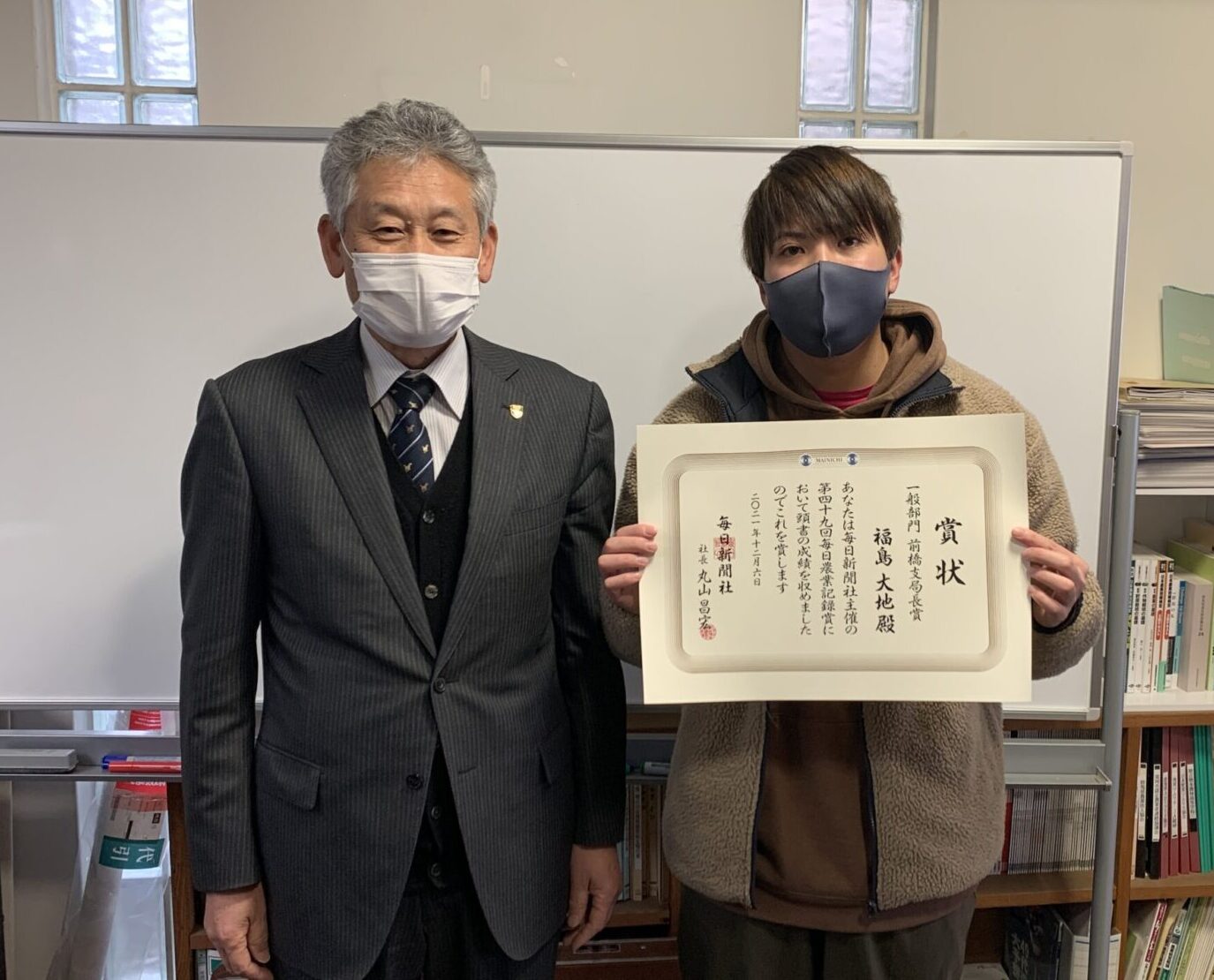 農や食、農に関わる環境への思いや体験をつづる、第49回 毎日農業記録賞(毎日新聞社主催)で本校の学生が一般部門(地区入賞)の前橋支局長賞を受賞しました。