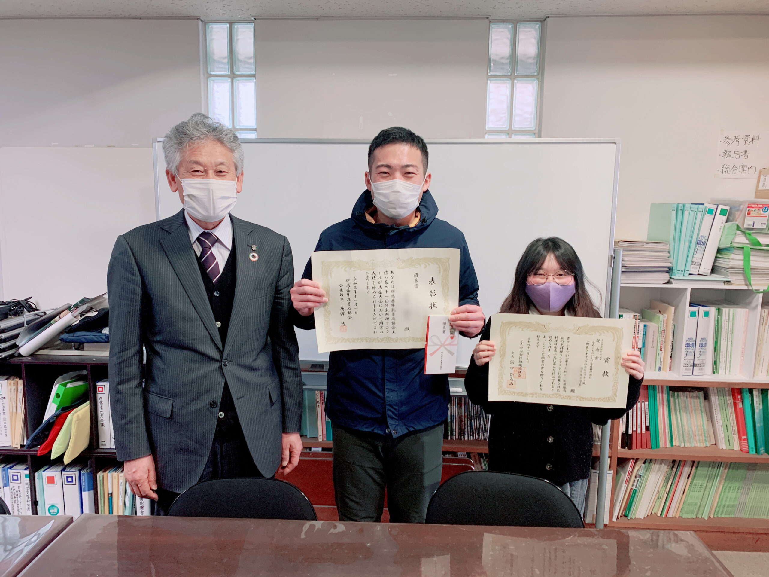 昨年に学生が参加しました、コンテスト、コンクールに入賞しました。 ● 第41回 牛乳利用料理コンクール群馬県大会 優良賞 ● 第19回 ザ・地産地消、家の光料理コンテスト「冷めてもおいしい 家庭料理部門」 JA全国女性協創立70周年記念賞 入賞おめでとうございました!!