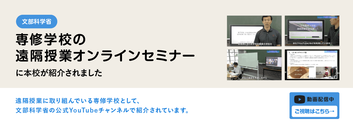 文部科学省のホームページ『5分でわかる実践映像』専修学校の遠隔授業オンラインセミナーに中央農業大学校が取組事例として紹介されました。 ・文部科学省ホームページはこちら https://youtu.be/DMXWIVwFcVo ・中央農業大学校の掲載動画はこちら ht…