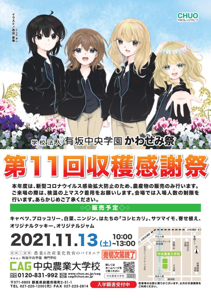 さて、学生たちが日頃の学習成果を発表してきました『収穫感謝祭』ですが、今年も新型コロナウィルス感染拡大防止のため、規模を縮小して農産物の販売のみとさせていただきます。