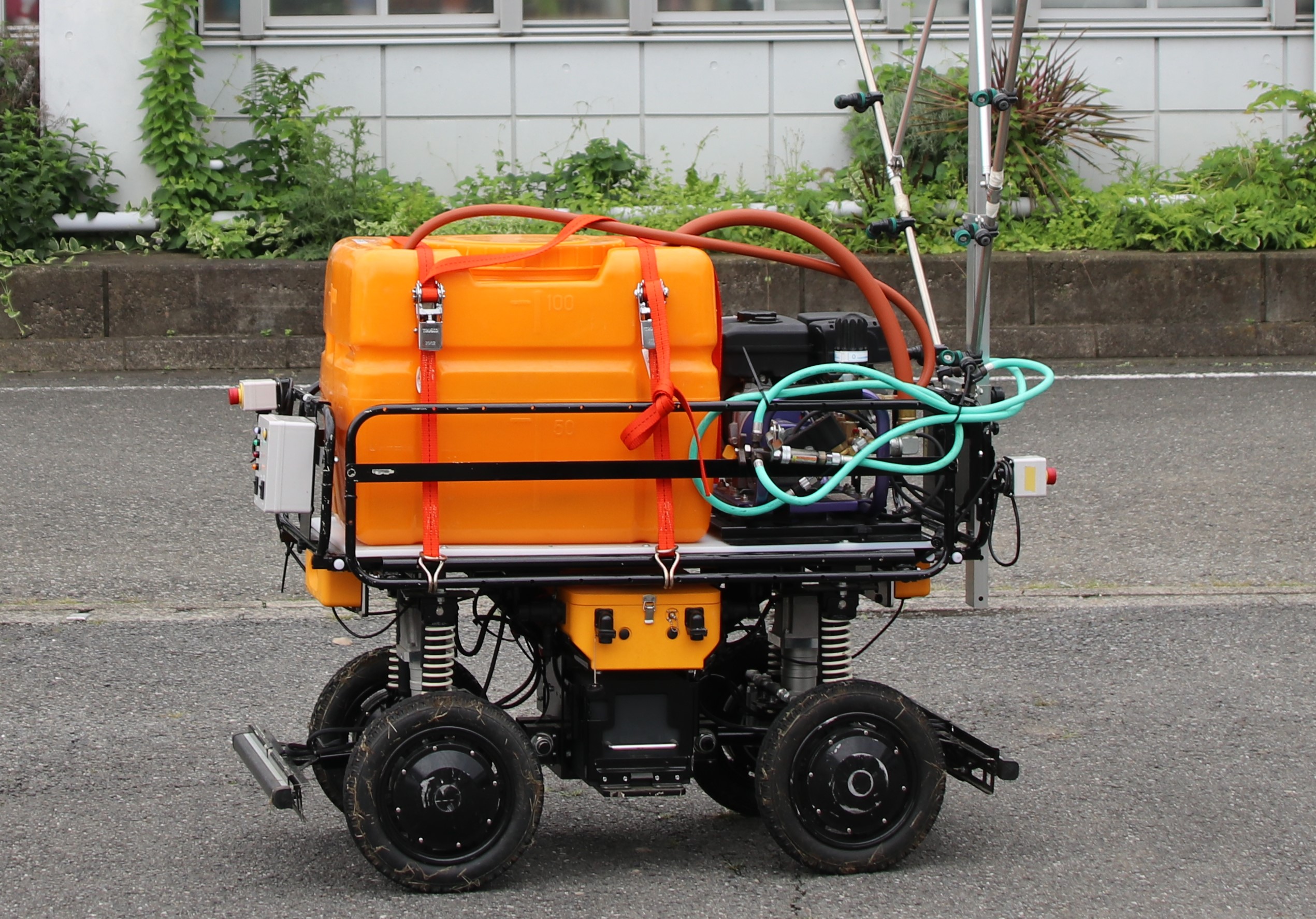 動力噴霧器とタンクを積載すれば、防除が可能になります。