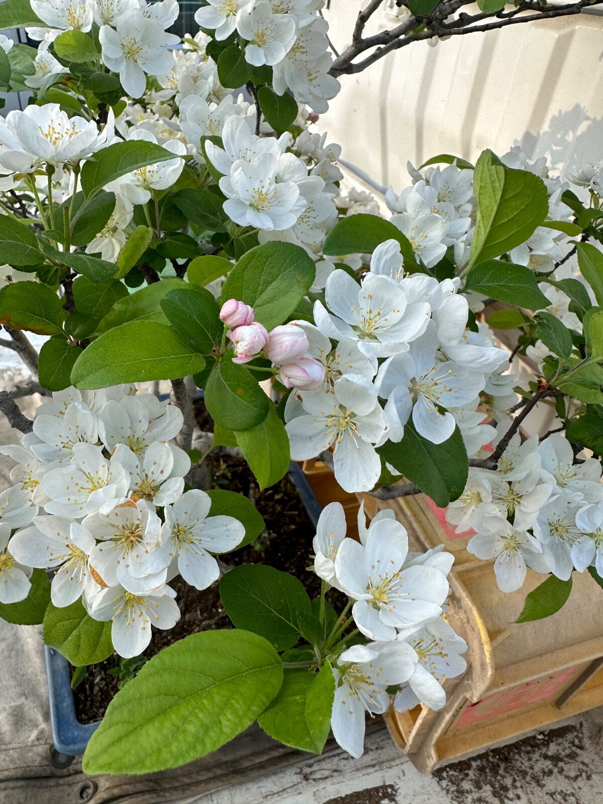 たけちゃんの愛しい盆栽その2 教師ブログ 2024/04/17 今日の愛しい盆栽は、ずーみんちゃん。 花言葉は『追憶』。純白の花が奇麗でしょう。 優しい甘い香りがする。 蕾はピンクでとっても可愛い。 秋に小さいリンゴ似の実が赤くなるのも素敵。 名前は「ズミ」。 北海道から九州までの広い範囲で自生するバラ 科の落葉樹。 たけちゃんと出会ってから35年経ちます。 宜しくね。 共有: