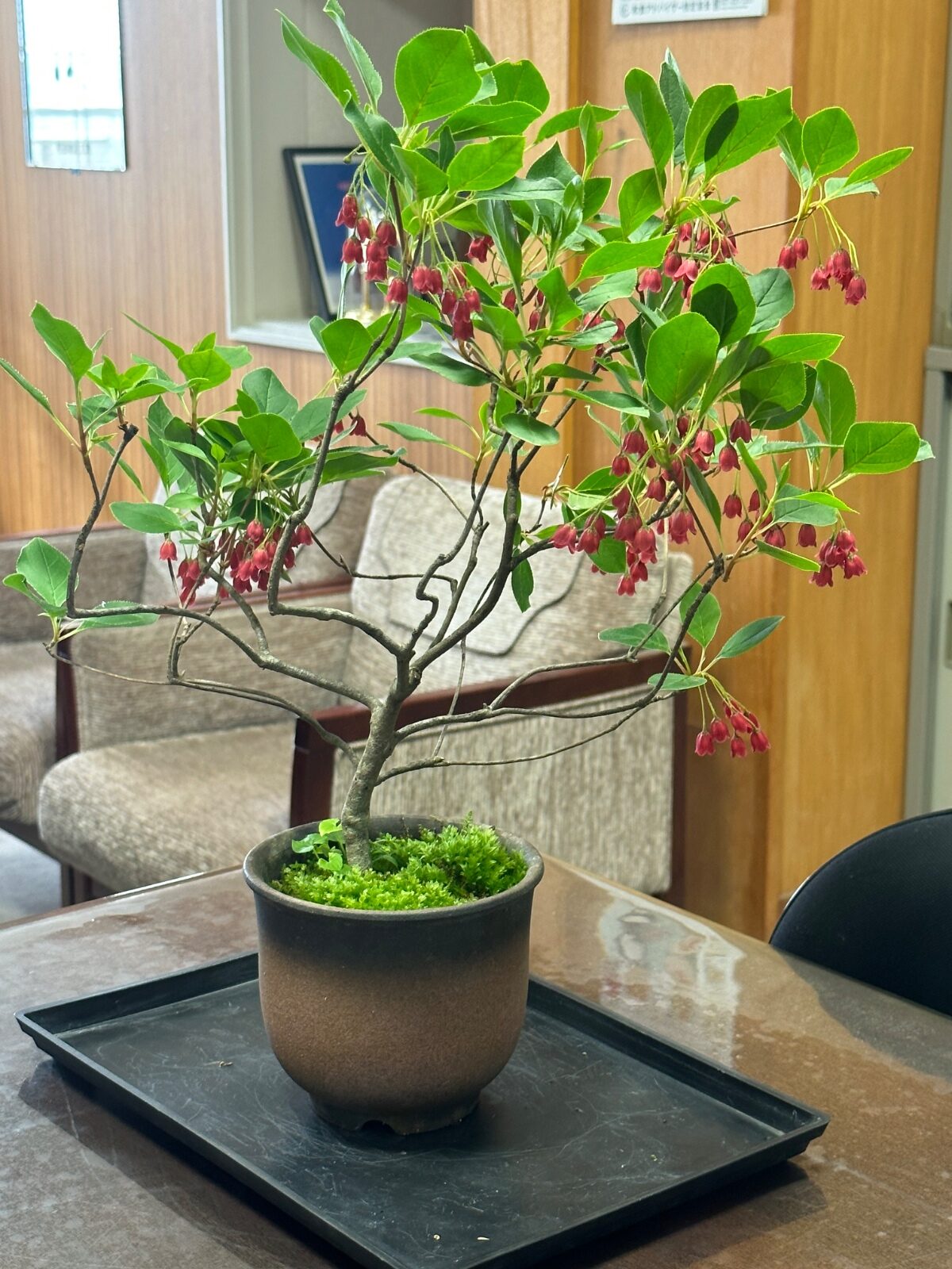 たけちゃんの愛しい盆栽その8 教師ブログ 2024/05/14 今日の愛しい盆栽は、どうりんちゃん。 紅色のつりがね型の花がとっても可愛い。 緑の葉は、秋には真っ赤に紅葉してとても奇麗。 花から紅葉まで長く楽しませてくれる。 花言葉は、「節制」、「上品」、「私の思いを受けて」。 名前は「ベニドウダンツツジ(紅満天星)」。 名前の由来は、「ドウダンツツジの枝先が結び灯台の脚部に似ている」こと。 たけちゃんと出会ってから6年経ちます。 宜しくね。 共有: