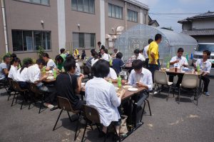 もちろんお肉だけでなく学校の圃場で収穫した野菜やごはんやサラダなども用意して食べていただきました。