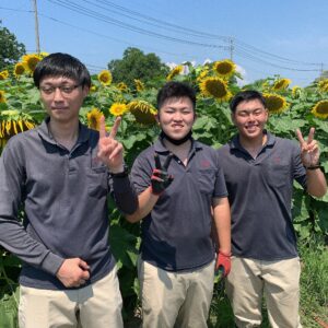 夏休みに入った学生たちですが、2年生は卒業研究で各自が育てている農場の管理中!自分たちでテーマを決めて頑張っています!(^^)!