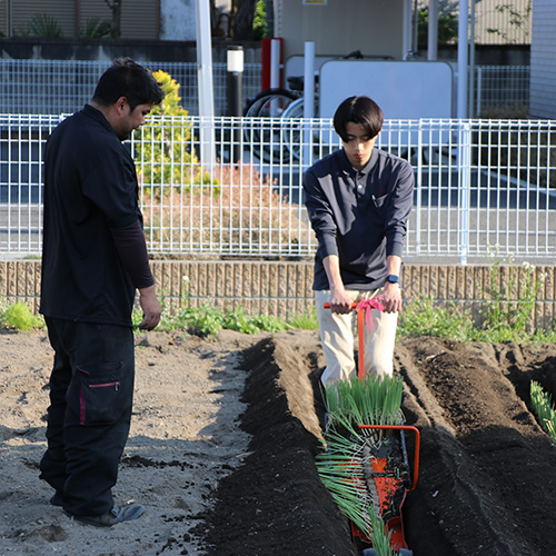 定植機で苗を植えています。企業連携で企業の方に来て頂いて現場の技術を学んでいます。実際に働いている方の話は大変勉強になります。