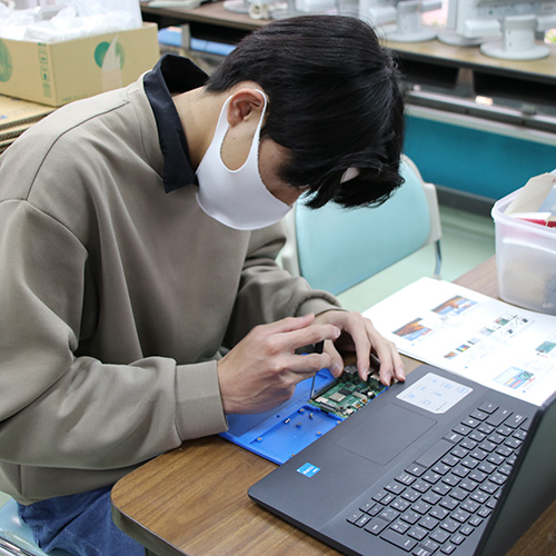 パソコンを作っています。この専攻では農業の勉強だけを学ぶのではなく最先端のテクノロジーも学びます。パソコンづくりも意外と楽しいです。