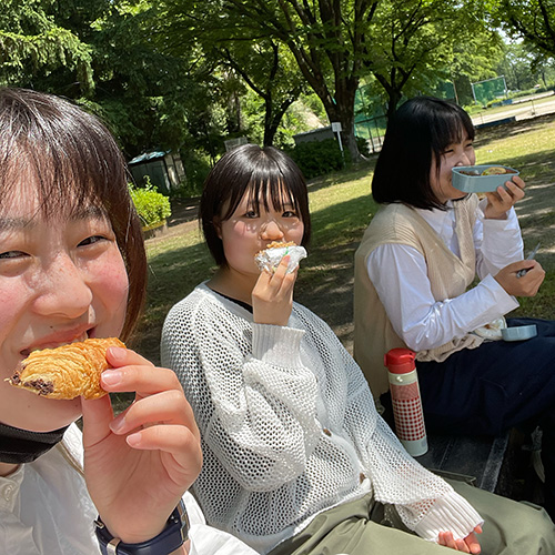 仲良しメンバーでランチ。休み時間は友達と楽しくご飯を食べたり、おしゃべりをしています。