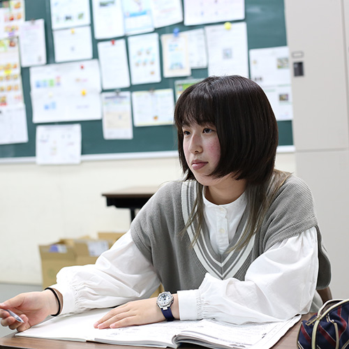 授業を受けているところです。商品の開発を勉強しています。好きなことが勉強できて嬉しいです。