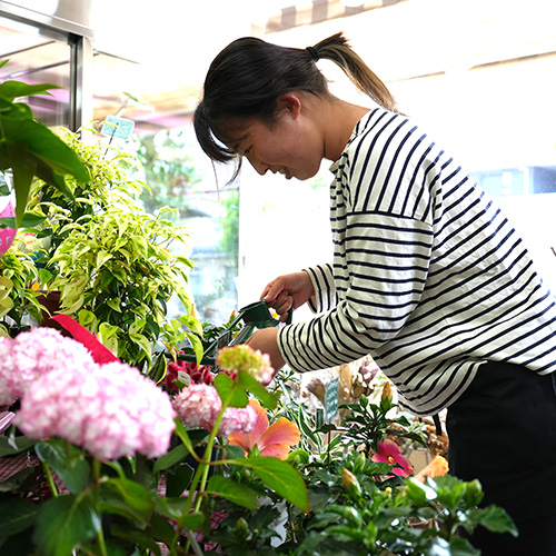 お花が好きなので、学校がお休みの時はお花屋さんでアルバイトをしています。お客様とお花の話でいつも盛り上がっています。