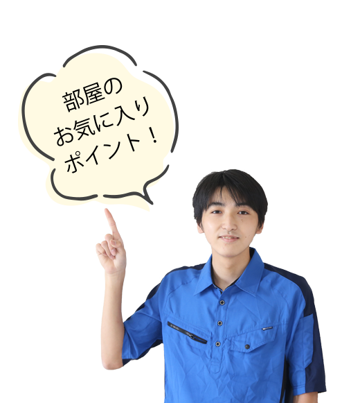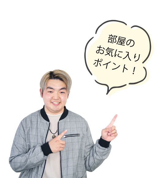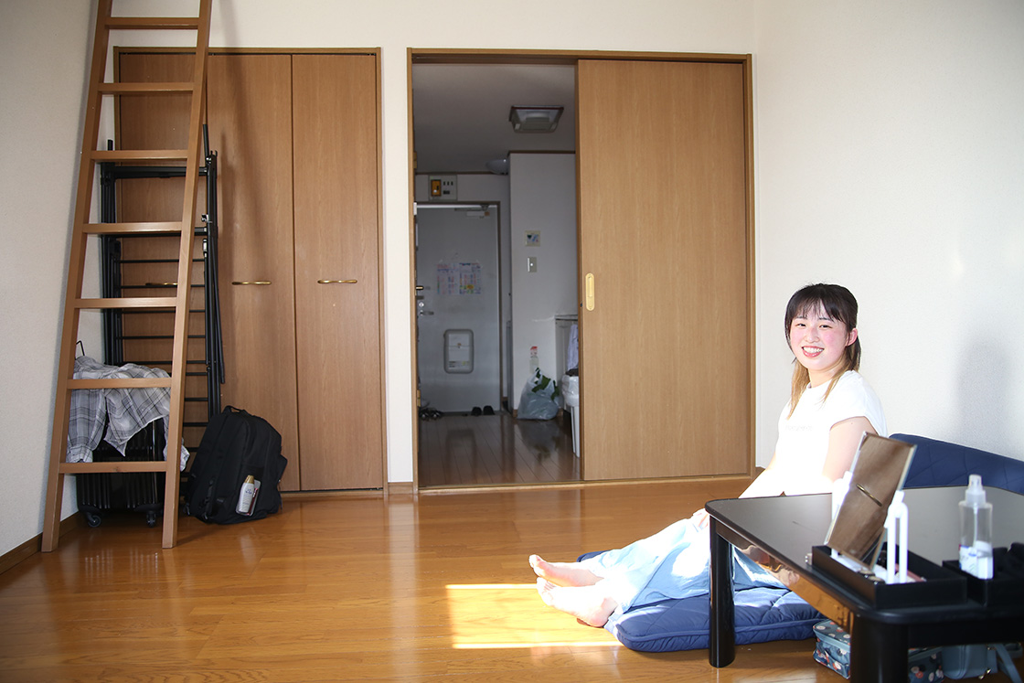 部屋はあまり広くありませんが、布団や大きな荷物がロフトの上にあるため部屋が広く使えます。学校からの距離と家賃で決めました。