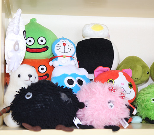 収納や棚がたくさんあり、趣味で集めたグッズを多く並べて飾っています。