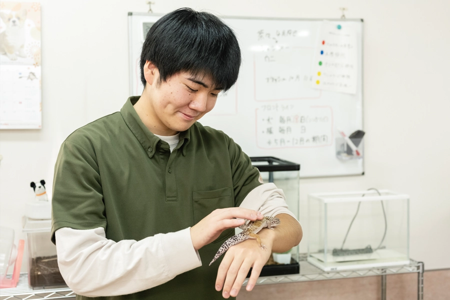 言葉を話さない動物の小さな変化に気づき、安心できるケアを行うために、動物の体と心を学び、実習を通して実践力を身につけます。