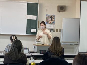 2年次の進路決定のためにゼミの時間に講師の霞堂先生からより詳しく仕事内容、必要なスキル、将来性などについてお話しいただきました。