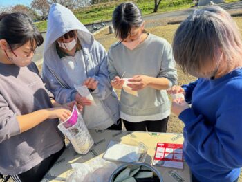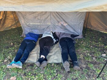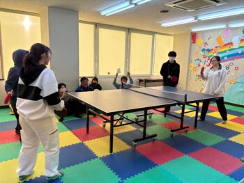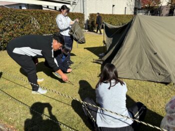22日は学校で座学を行い、テント張りの練習をし、卓球をし・・・