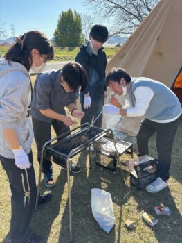 キャンプ場へ行き、テント張りにBBQと生きていくために必要な力を