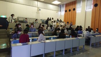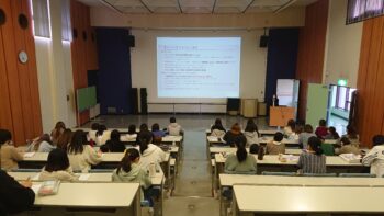 来年から現場へ出ていく診療情報管理士専攻と、2年生の就職クラスの学生たちは特に真剣にメモを取りながら聞いている姿が印象的でした。ぜひ、就職後に活かしてもらいたいです。