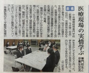 座談会では卒業生から前橋赤十字病院での業務内容などをお聞きし、学生たちの卒業研究テーマのヒントをいただきました。