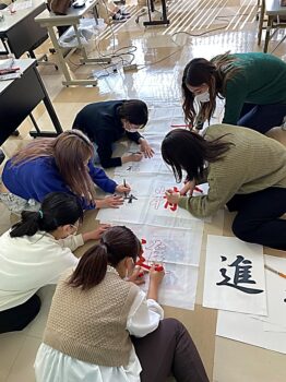 就職年次の学生たちは、明日、『就職総決起大会』で使用する「決意表明の色紙」「のぼり旗」も仕上げて準備万端です!就職活動に向けてクラスで心を一つに頑張って内定を勝ち取りましょう!!