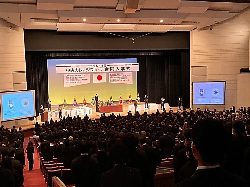 4月9日(土)にベイシア文化ホールにて入学式が行われました。中央カレッジグループ9校合同の入学式が挙行されたのは、3年ぶりのこと。新型コロナウイルス感染予防対策を充分に行った上で、新入生が一堂に会しました。新入生は緊張感に満ちながらも、これから学ぶ気持ちを新たに、来週から始まる授業・資格取得の学習や学園生活に希望を膨らませ、式に臨んでいました。