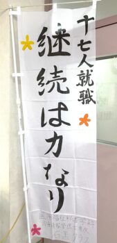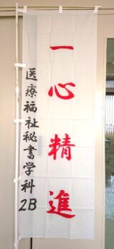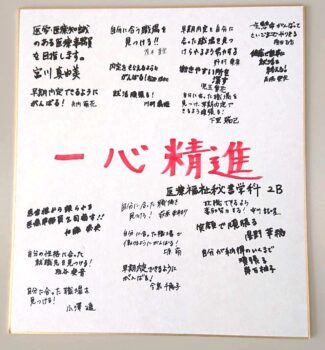 就職年次の学生たちは、明日、『就職総決起大会』で使用する「決意表明の色紙」「のぼり旗」も仕上げて準備万端です!就職活動に向けてクラスで心を一つに頑張って内定を勝ち取りましょう!!