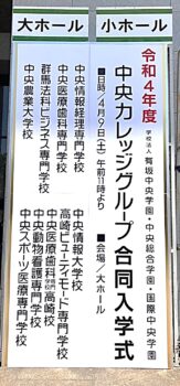 4月9日(土)にベイシア文化ホールにて入学式が行われました。中央カレッジグループ9校合同の入学式が挙行されたのは、3年ぶりのこと。新型コロナウイルス感染予防対策を充分に行った上で、新入生が一堂に会しました。新入生は緊張感に満ちながらも、これから学ぶ気持ちを新たに、来週から始まる授業・資格取得の学習や学園生活に希望を膨らませ、式に臨んでいました。