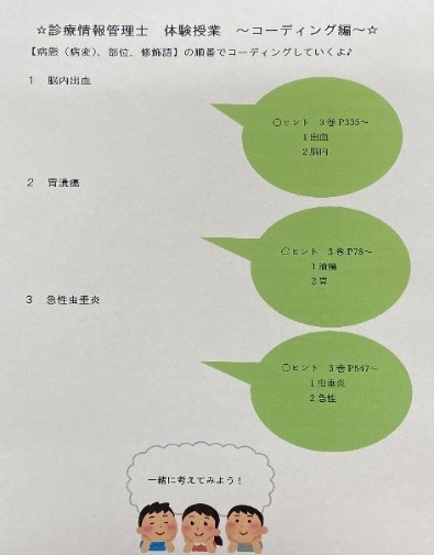 診療情報管理士の体験授業では診療情報の活用のため、データ化し情報を提供する