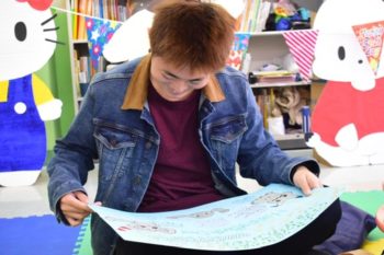 プレゼントは、誕生日の学生に喜んでもらえるよう、画用紙を使って自作のメッセージカード(^_^)v