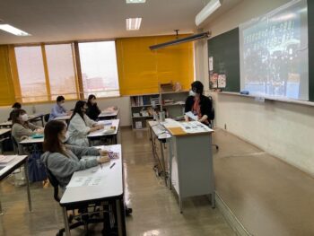 ゼミの時間に行われた特別授業では前橋赤十字病院医師事務サポート課に勤務する卒業生が日常業務を紹介してくれました。心臓血管内科の医師事務として勤務する卒業生は、カテーテル治療など行う医師の診療以外の事務業務をサポートするのが仕事です。医師の指示で症例データベースへの登録、電子カルテへの入力、患者さんを紹介してくれた医療機関の医師あてに紹介状のお返事を書くこと、医師の代理で学会の出張などにも行くことも仕事です。