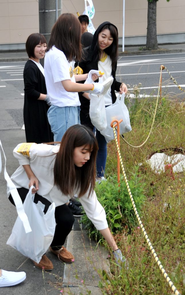 医療福祉秘書学科1年生が火曜日に地域清掃を行いました。本校の地域貢献のひとつですが、学生たちは日差しの強いなか、学校や学生駐車場、新前橋駅の周辺などゴミ拾いを行いました。たばこの吸い殻や、空き缶、ペットボトルなど路上より見えにくい場所に捨ててあり、改めてポイ捨てはしない、マナーを守る大切さを実感していたようです。