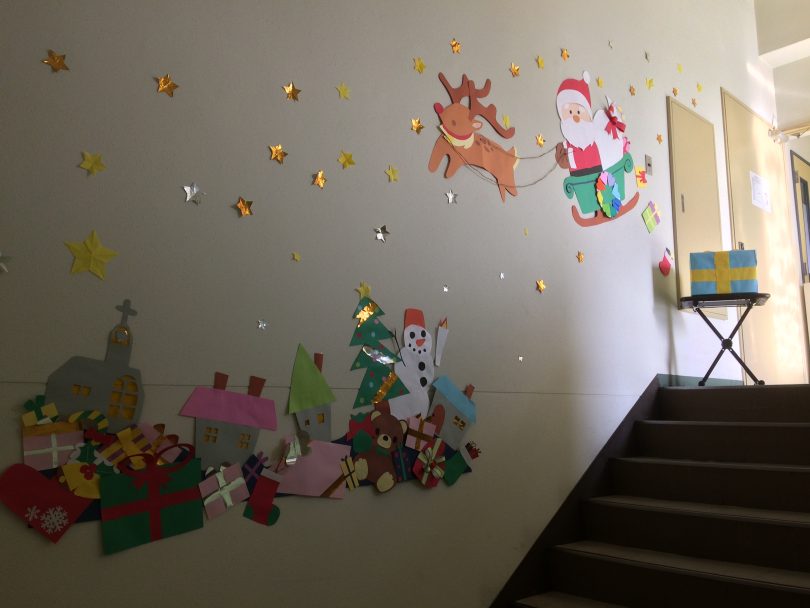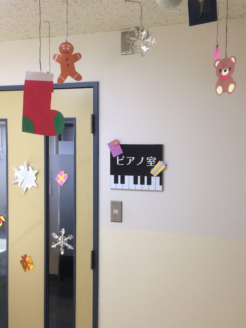 中央情報経理専門学校保育福祉学科の進路フェスタは、中央情報の保育だからこそできる内容の準備を進めています。今日は12月9日に向けた壁面かざりの様子をお知らせします。12月9日といえば世の中はクリスマス一色。そこで当日会場となるピアノ室を保育福祉学科の3年生がクリスマスバージョンにアレンジし飾ってくれました。どうですか?かわいい飾りに仕上がったでしょう?保育関係の仕事に内定をいただいた保育の学生の作品ですからよくできているはずです。サンタさんとともに高校生の皆さんをお待ちしています。