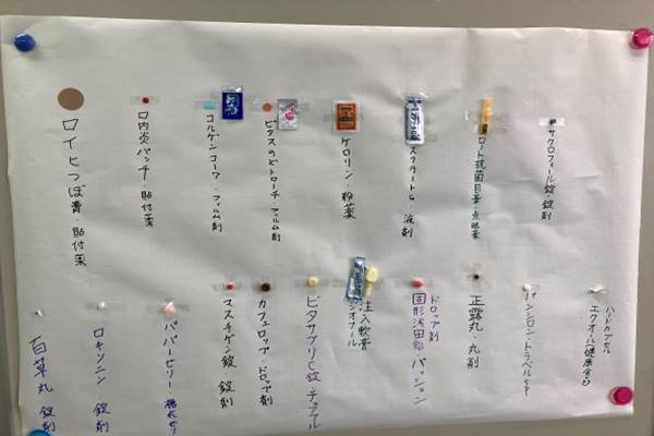模造紙に薬を貼り付け、剤型の一覧表を作成しました!