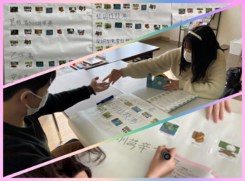 医薬販売学科では、生薬のカードゲームを楽しんだり、山に行き生薬を探したり、