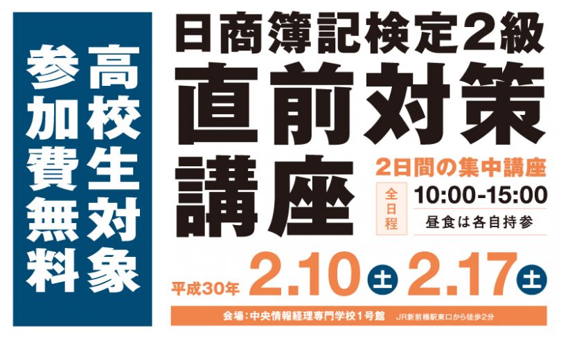 日商簿記検定2級 直前対策講座のご案内