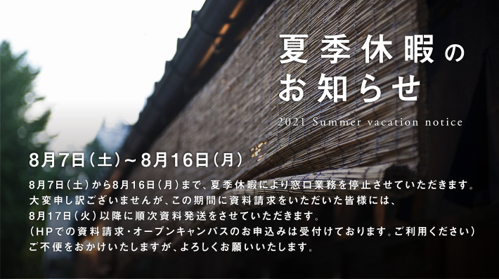 - 4連休(7月22日~7月25日)に伴う休業のお知らせ