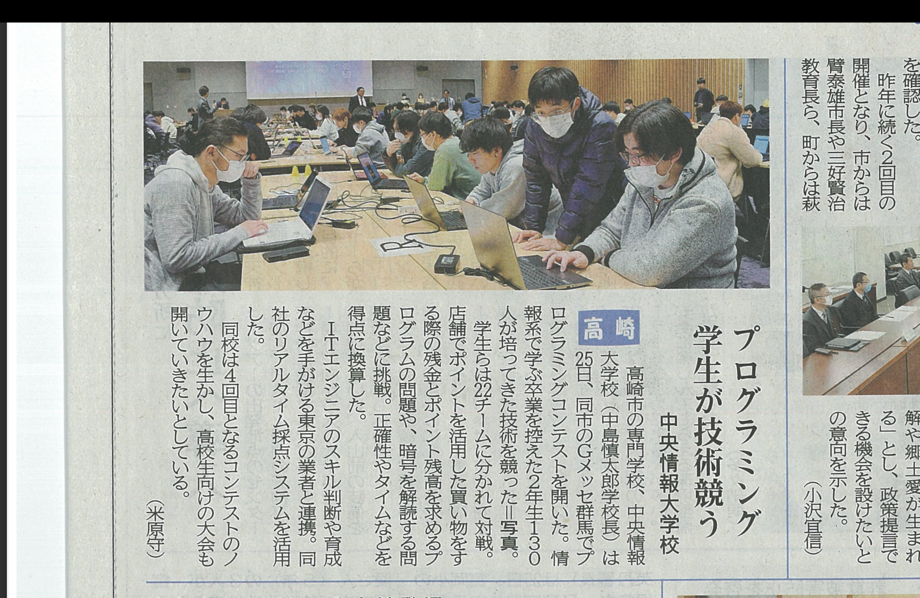群馬県内外の高校生向けのプログラミングコンテストの実施もしていきたいと考えています。