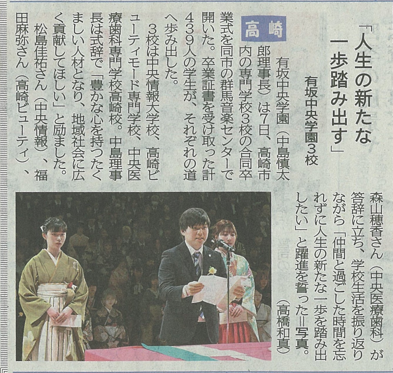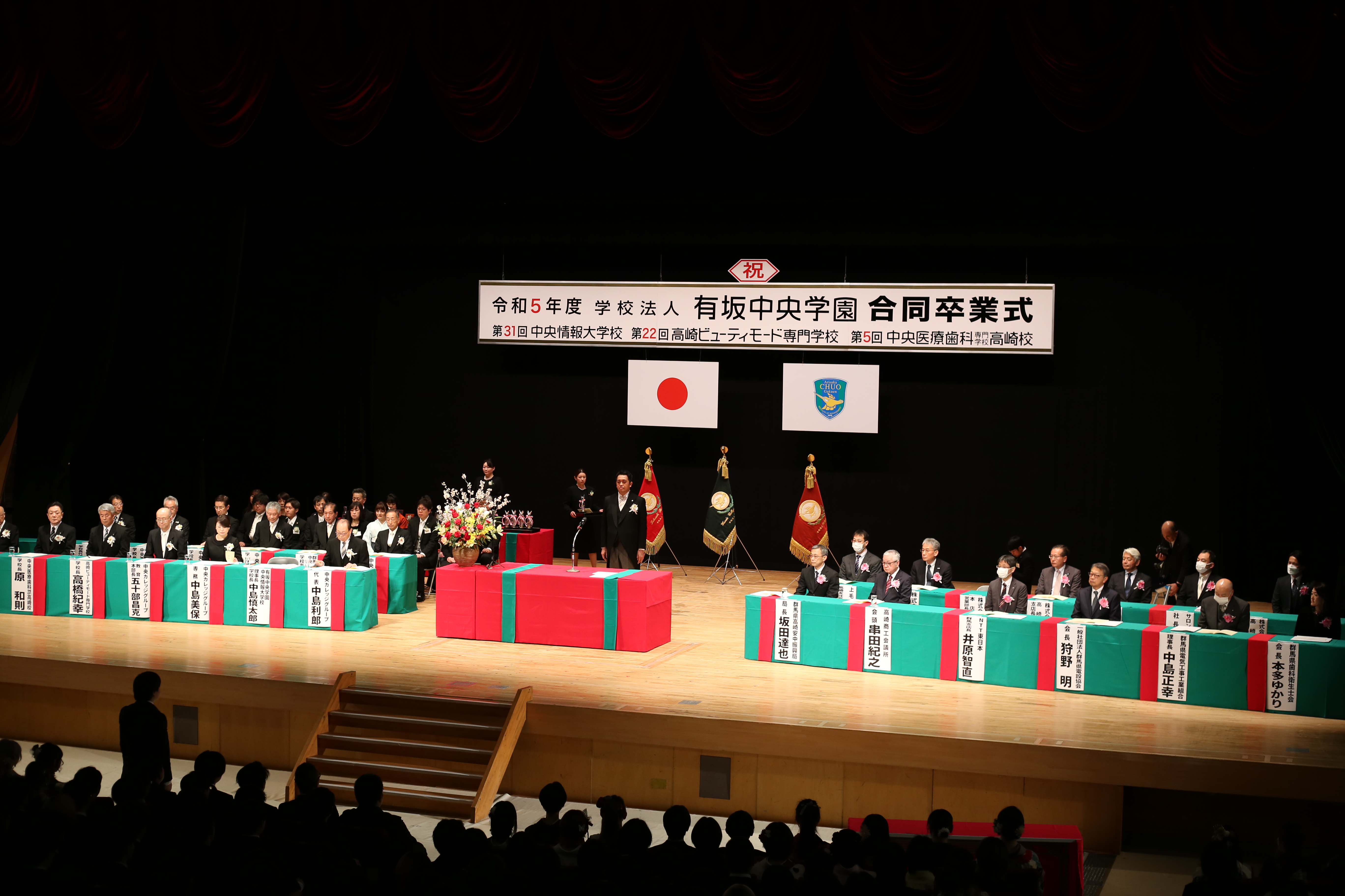 令和5年度、有坂中央学園3校合同卒業式が、3月7日(木)に群馬音楽センターにて挙行され、439名の学生が卒業いたしました。