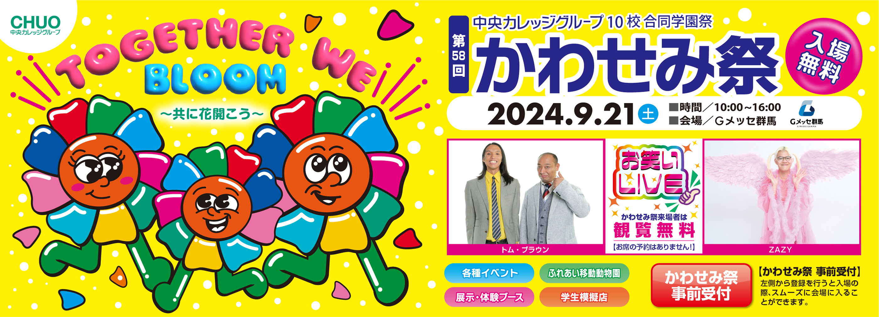 中央情報大学校は、群馬県高崎市 高崎駅から徒歩3分の好立地にある専門学校です。情報、デザイン、電気通信の分野に関係する様々なイベントを行っています。最新情報はX(旧ツイッター)で呟いていますので、是非ご覧ください。