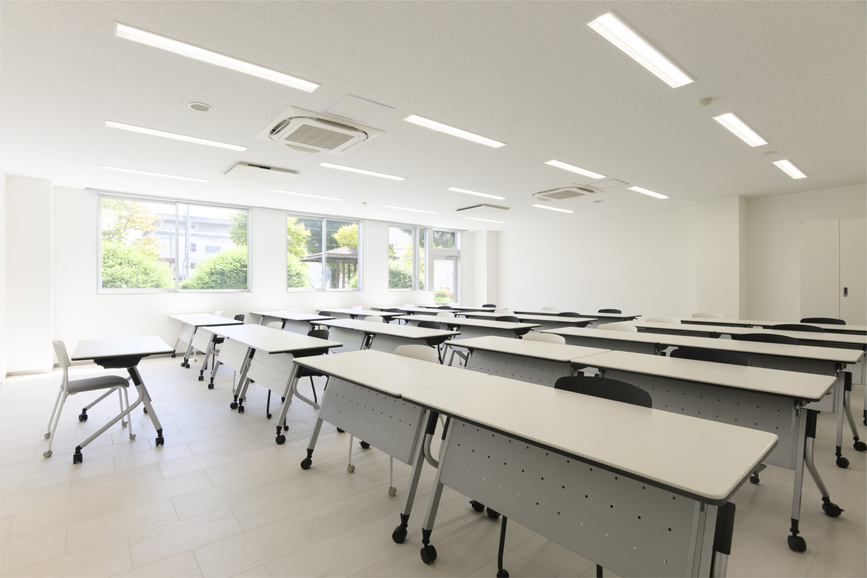 広々とした教室では、授業はもちろん、特別講義やワークショップなどの多様な学習スタイルに対応できる設計となっています。