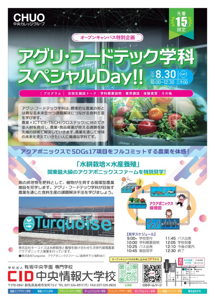 ◆8月30日(土)アグリ・フードテック学科スペシャルDay!!