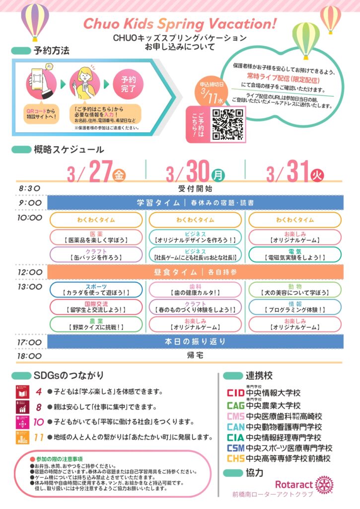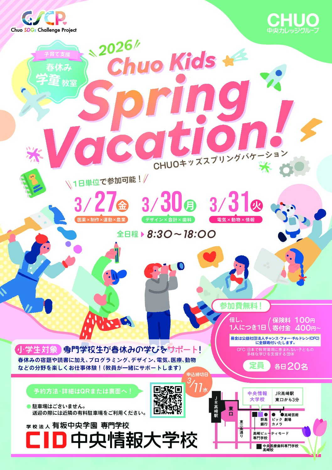 この夏中央情報大学校では、小学生のお子さまを対象にした特別イベント「春休み学童教室(Chuo Kids Spring Vacation)」を開催いたします。