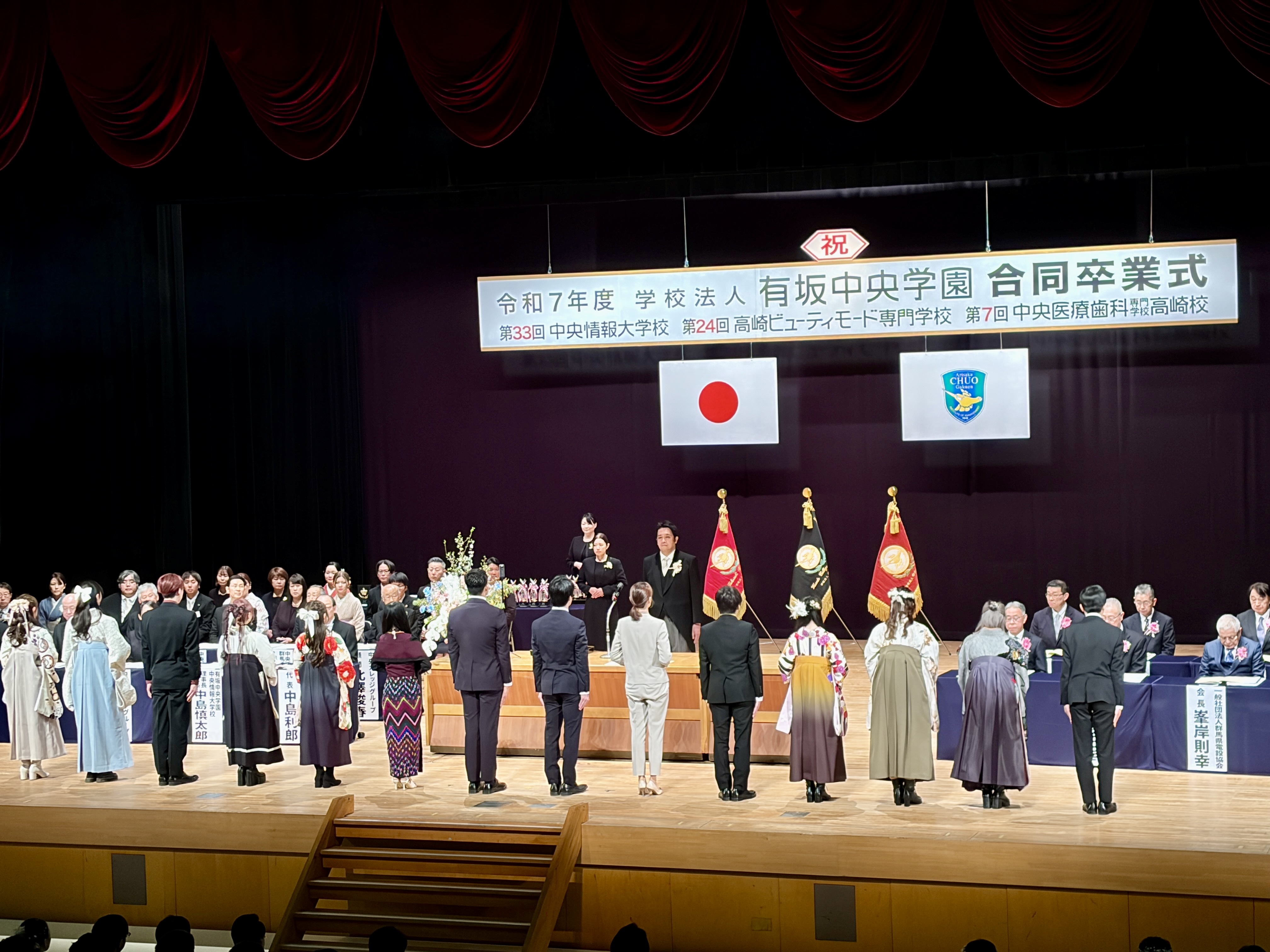 令和7年度、有坂中央学園3校合同卒業式が、3月12日(木)に群馬音楽センターにて挙行され、403名の学生が卒業いたしました。