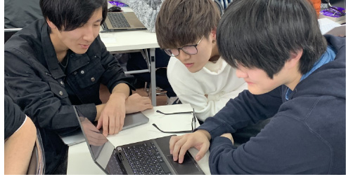 必修科目のUnreal Engineに、メタバースなどの学習も加えることで既存の価値観を打ち壊し、ゲーム理論を学習することで、次世代のトレンドをアイディアとして生み出す学習をします。「2D×3D×メタバース」の融合によるゲーム開発を行い、ゲーム制作の起点となる人材を目指します。