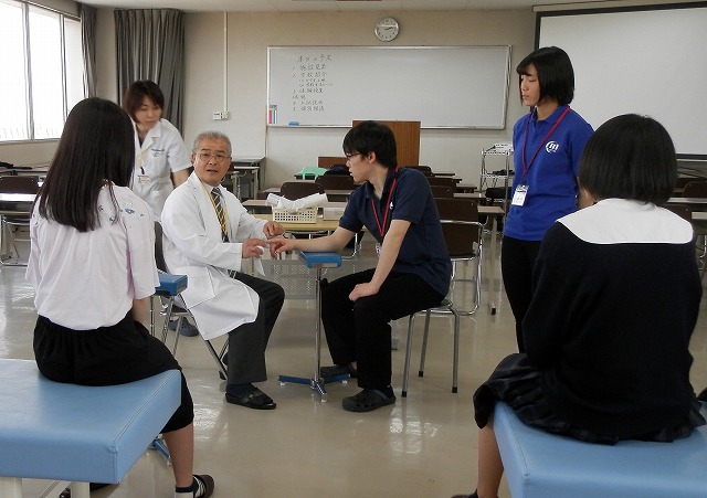 また、体験授業では手指のケガに対する包帯の巻き方を学生スタッフと一緒に楽しく学んでいきました。