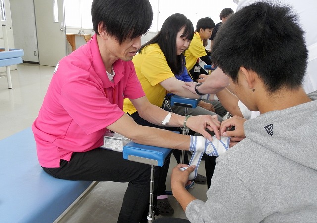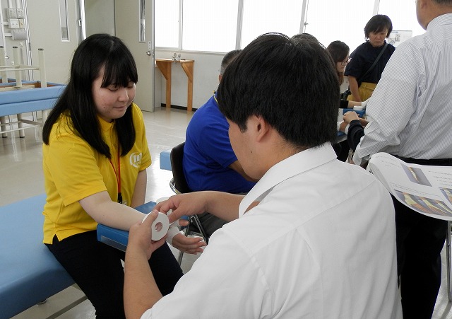 6月15日(土)に春のオープンキャンパスが開催されました。体験授業は「手関節のテーピング」を行いました。楽しく、ためになったとのお声をいただきました。次回7月13日(土)の体験授業は「足関節のテーピング」を行う予定です。是非、お越しくださいね。
