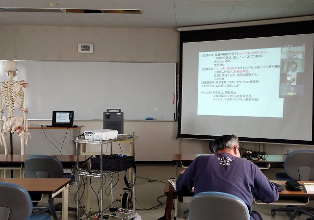 各自のパソコン、スマホ等から本校の教務システム(前橋東洋moodle)にログインし、オンライン会議システム(ZOOM)により、双方向での授業を行っています。