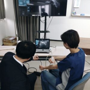本日、一年生の臨床実習として株式会社エス·エス·ビーさんに超音波画像診断観察装置(エコー)について講演をして頂きました🏫